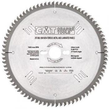 Hoja circular CMT Orange Tools de 250 mm con espesor de 2,8 mm y ancho de 30 mm, diseñada para cortes largos en madera y paneles. Su perfil Z 24 ATB a 20° ofrece rendimiento estable y precisión, perfecta para trabajos profesionales.