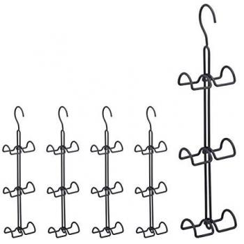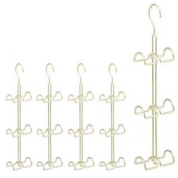 Set de 5 Perchas para Bolsos con 6 Ganchos, Organizador Metálico Ahorra Espacio, Color Plateado