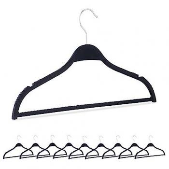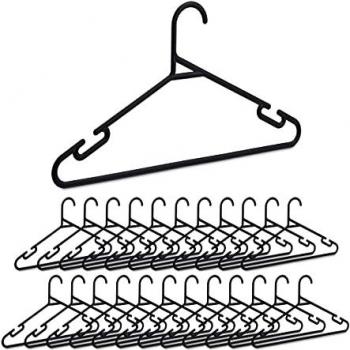 Set de 24 colgadores ultrafinos, perchas para ropa con varilla para pantalones, plástico reciclado, negro