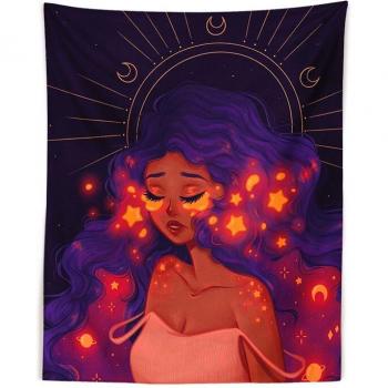 Tapiz Hippie de Macramé con Motivo de Fase Lunar y Estrellas