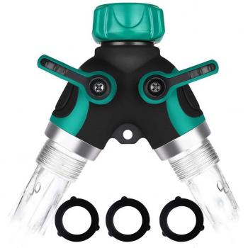 Distribuidor de 2 vías de jardín, divisores de manguera de aleación de Zinc con flujo de agua Y conector de grifo práctico Regulable, conectores de agua para jardín
