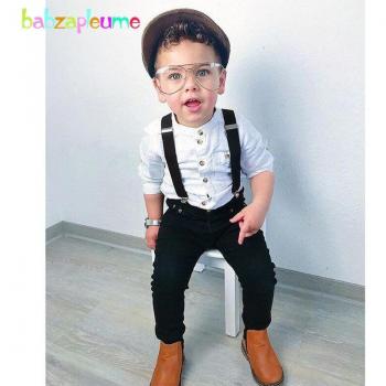 Ropa de primavera para niños pequeños, traje de caballero para bebé, camisa blanca + Pantalones + correas, conjuntos de 3 piezas, BC1303