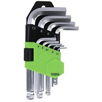 Juego de 9 llaves Allen cortas con punta redonda y boquillas hexagonales