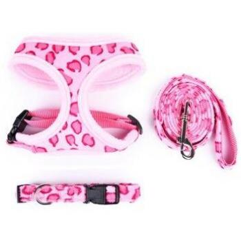 Arnés duradero de algodón para mascotas, Collar ajustable de leopardo rosa y Beige, conjunto de arnés con correa para cachorros, Control de seguridad para perros pequeños y gatitos