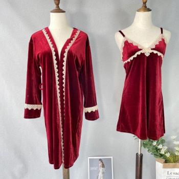 Conjunto de 2 uds. de bata de baño y vestido de encaje para otoño