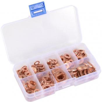 Juntas de cobre compuesto de 200 piezas arandela Circular plana junta de sellado de aceite tipo O arandelas de sellado métricas de cobre conjunto surtido