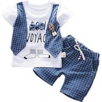 Ropa de Verano para Bebé Niño ShangSRS - Camiseta y Pantalones Cortos a Cuadros