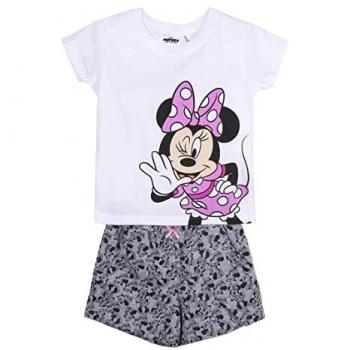 Pijama Manga Corta Minnie Mouse Blanco y Gris Niña 77917