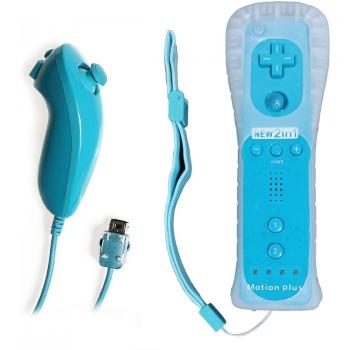 Control remoto de juegos CooleedTEK con Motion Plus y Nunchuck para Nintendo Wii y Wii U (azul)
