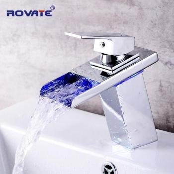 Grifo de lavabo con iluminación LED y acabado en vidrio