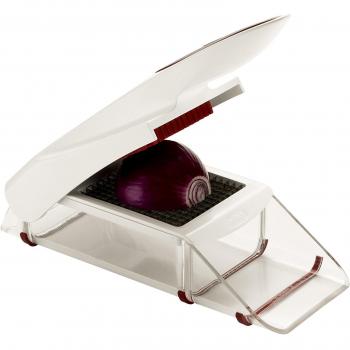 Con su robusta construcción en acero inoxidable, este cortador transforma zanahorias, calabacines y papas en láminas finas o chips crujientes con un solo giro. El mecanismo de ajuste permite cambiar el grosor del corte sin esfuerzo, mientras que el depósito integrado recoge los restos para una cocina impecable. Ideal para preparar aperitivos saludables y acompañamientos rápidos.
