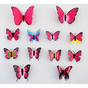 Adhesivos 3D decorativos para pared, mariposas rosas 24 unidades