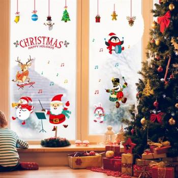Caja de música de Navidad corona de estilos de puerta de cristal de la ventana pegatinas de pared cartel Home Decor 3D impermeable de PVC de cristal corona