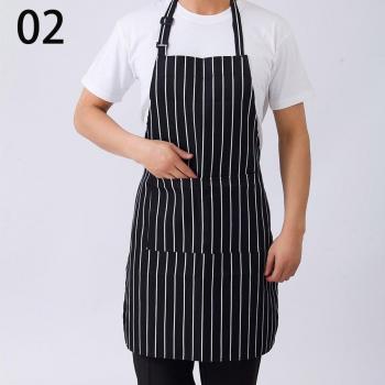 Delantal de Rayas Negro Halter con Bolsillos para Cocina