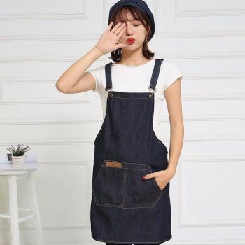 Delantal de tela vaquera impermeable con cordones Unisex, delantal de almacenamiento de limpieza, para restaurante, Hotel, cafetería, panadería, barbería, Chef, camarero, delantal de trabajo