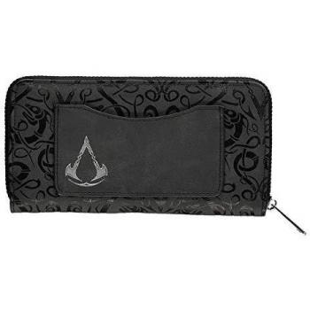 Cartera Assassins Creed Valhalla con silueta de vikingo y tono negro, ofrece bolsillos para billetes, ranuras para tarjetas y un compartimento adicional; diseño compacto, resistente y discreto para el uso diario.