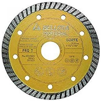 Disco de corte láser 230 mm con núcleo segmentado Bellota Pro 7, pensado para trabajos secos en hormigón y mampostería; su diseño reduce vibraciones y prolonga la vida útil del disco.