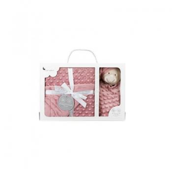 Manta y peluche osito Dou Dou para bebé, color rosa palo