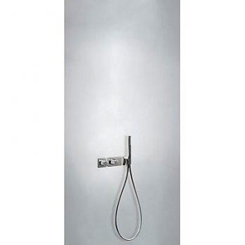 Disfruta una ducha controlada con nuestro kit monomando empotrado; incluye cuadro con cierre y regulación de caudal, cuerpo integrado y soporte con toma pared para instalación sencilla.