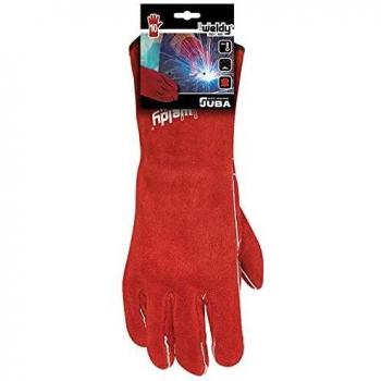 Guante de Piel con Refuerzo y Velcro en Rojo, Talla 9