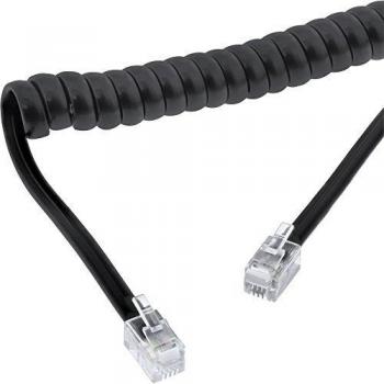 Cable RJ10 4P4C M/M en espiral para manos negras, 4 m de longitud máxima