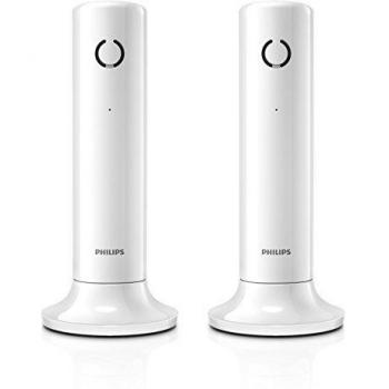 Philips XL4901S/23 - Pack 2 Teléfonos Fijos Inalámbricos, Pantalla 1,9'', Altavoz Integrado, Compatible con Audífonos, Manos Libres, Identificador de Llamadas, Teclado Retroiluminado, Memoria de Marcación Directa, Blanco