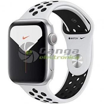 Apple Watch Series 5 Nike GPS, Caja 44mm Aluminio Plata y Correa Deportiva Platino Puro/Negro