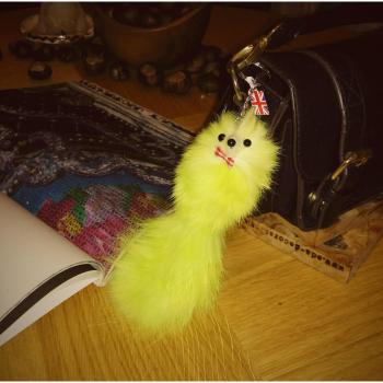 Llavero de piel pelo amarillo con encanto de animal