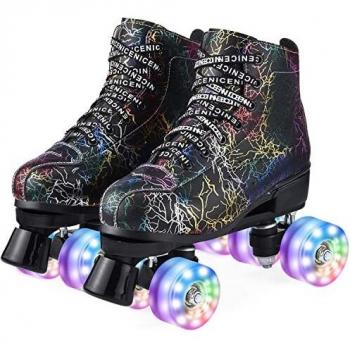 Patines sobre ruedas paralelos de 4 ruedas con iluminación para niñas, niños y principiantes (talla 37-43)