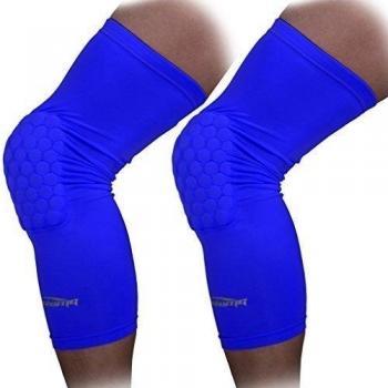 2 paquetes (1 par) de protector de engranaje para niños y adultos, COOLOMG, modelo EVA CrashProof, deporte de baloncesto, longitud de manga larga, tonalidad azul marino, talla XL