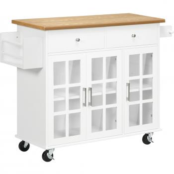 Carro de Cocina con Ruedas HOMCOM, Isla de Cocina con 2 Cajones y Especiero 110x45x89 cm Blanco