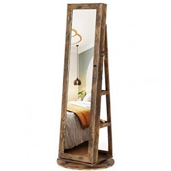 Armario joyero de estilo nórdico con espejo giratorio completo, estantes traseros y cerradura. Su acabado blanco madera ofrece un espacio compacto para collares, anillos y cosméticos, combinando practicidad y elegancia.