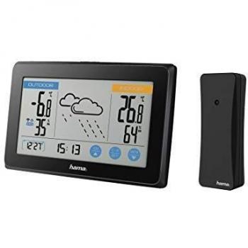 Hama | Termómetro e Higrómetro Digital, con Reloj y Previsión Meteorológica (Control de Temperatura Digital con termómetro e higrómetro Medidor de Temperatura para Interior) Color Negro.