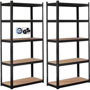 Estantería de Almacenaje AREBOS 2x - 180 x 90 x 30 cm - 875 kg - 5 Estantes - Color Negro