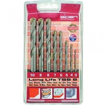 Conjunto de ocho brocas de carburo con filo afilado, ideales para perforar concreto, piedra y materiales de construcción; tamaños que van desde 3 mm hasta 10 mm, garantizando cortes limpios y duraderos en cualquier superficie dura.