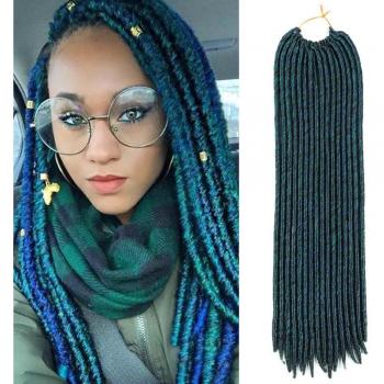Trenzas Rastafari Faux Locs 18" Mezcla Verde Azul - Extensiones de Ganchillo