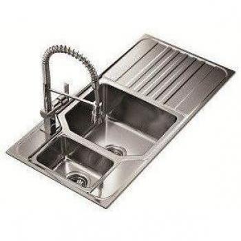 Fregadero Teka DR‑80 1C 1E en acero inoxidable con un solo vaso circular y escurridor integrado, pensado para mueble de 45 cm; su acabado pulido combina resistencia y estética moderna en la cocina.