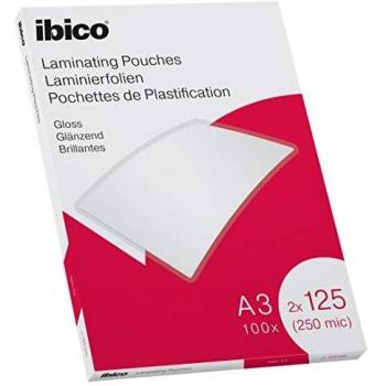 Pack de 100 Fundas Plastificadoras A3, 250 Micras Brillo, Ibico