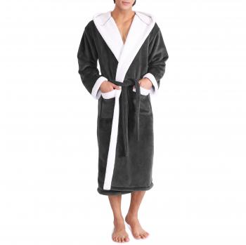 Bata de baño unisex Genuwin con capucha - Albornoz de lujo de doble cara de terciopelo y forro de lana - Oeko Tex 100