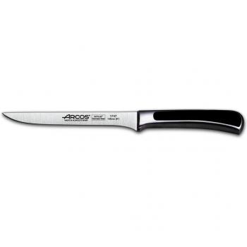 Cuchillo deshuesador de 16 cm con hoja de acero cromado 18 que se curva con facilidad, facilitando el trabajo entre hueso y carne; mango en acero inoxidable brinda firmeza y durabilidad.