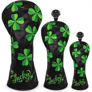 Protector de cabeza de driver en negro con diseño Lucky Clover