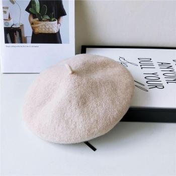 Boinas de mujer estilo Vintage boina hecha a mano de lana de cerezo dulce gorra de color liso pintor boinas cálidas cómodas