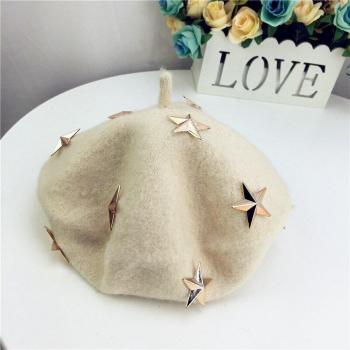 Boina de lana con estrella para niñas, gorro cálido de invierno, gorra de pintor francés, gorros para niños