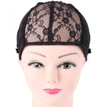 Gorra de malla de encaje para peluca negra con correa ajustable