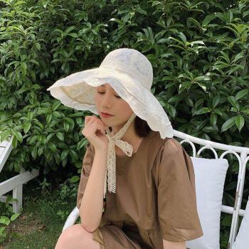 Sombrero de Paja para Mujer con Encaje para la Playa