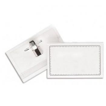 Caja 50 portanombres congreso rígido imperdible + pinza 5,5x9cm