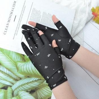 Guantes transpirables de verano con estampado de puntos, guante de conducción de seda helada con dos dedos, protector solar antideslizante, elegantes guantes de con lazo