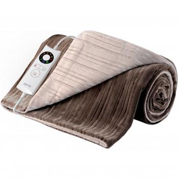 Almohadilla eléctrica rectangular de 40x35 cm con mando digital que ofrece cinco ajustes térmicos, tejido de microfibra hipoalergénico lavable y potencia de 15 W; incluye apagado automático para mayor seguridad.