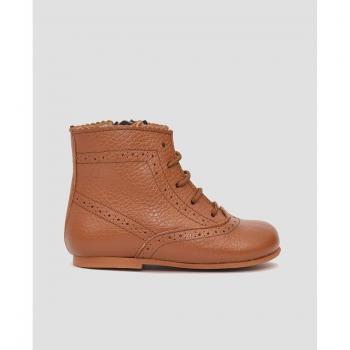 Botas para bebés Mr Mac Shoes, piel rugosa camel, cierre de cordón