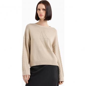Armani Exchange para mujer. 6DYM1CYMZ1Z1998 Jersey de cuello redondo beige (S), Casual, Algodón